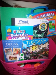 - When looking for items to fill in your kids’ basket, think of what really interests him or her.