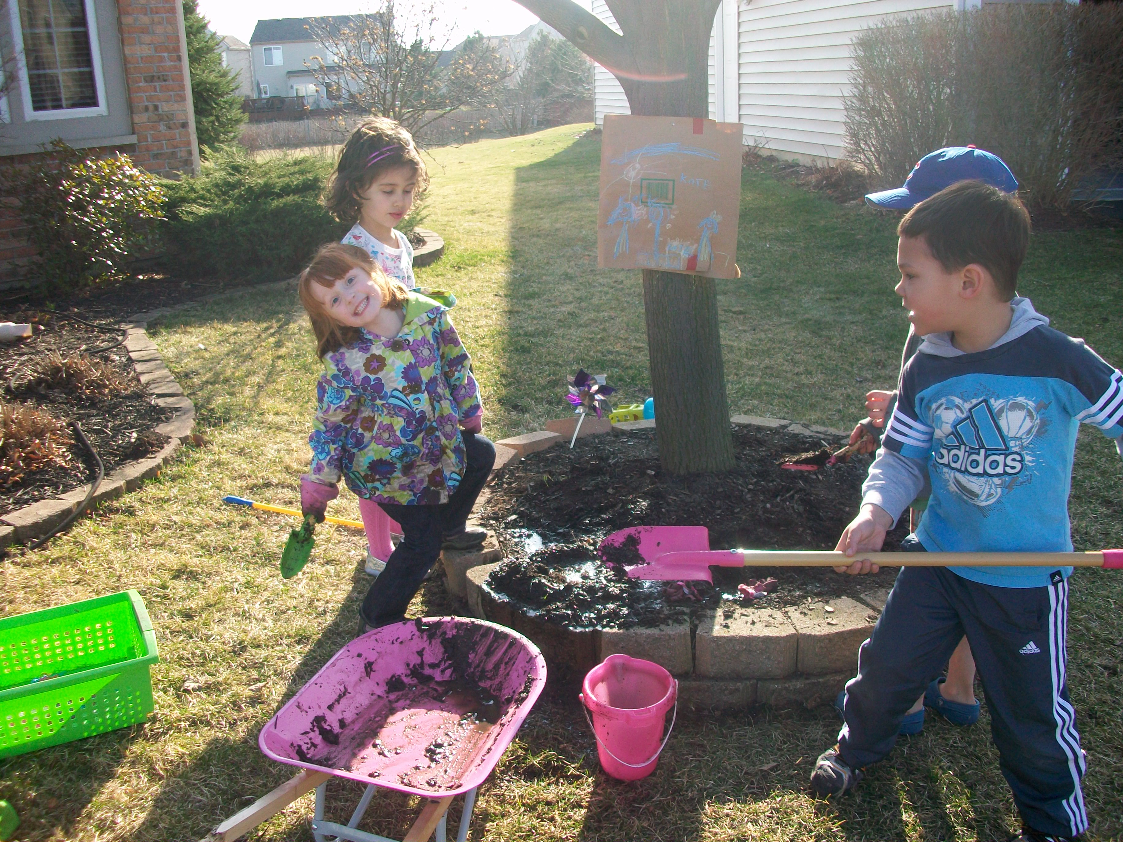- Kid-sized rakes, shovels and trowls can be beneficial (to your yard) and empowering (to the little people in your life)–just make sure they have clear parameters as to where they can do their “work”