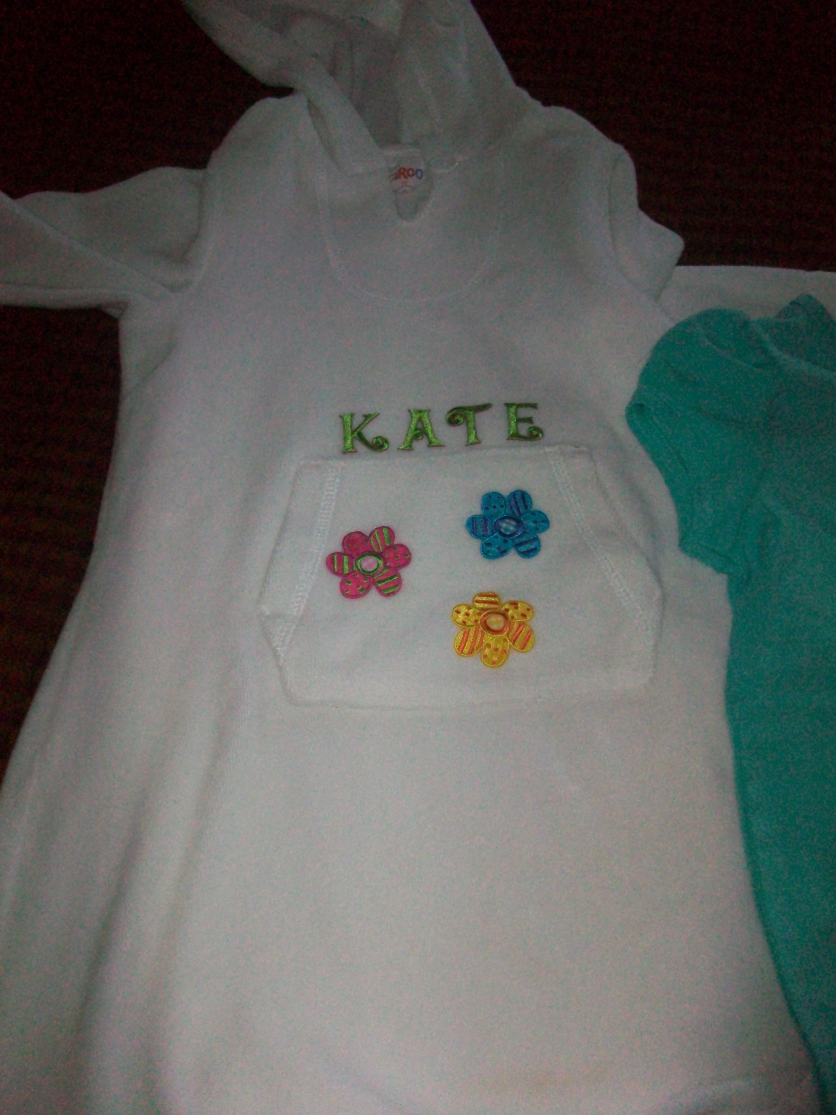 - While I was at it, I picked up some adorable iron-on embroidered appliques and attached them to their plain white terrycloth cover-ups (purchased at Target for $10).