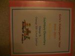 Kindergarten Binder: Get yourself a 3-ring binder and some sheet protectors. Save things you and your child are particularly proud of. For example, Kate’s class works with the Jolly Phonics program. Each week or so, she brings home a new letter/sound along with worksheets that correspond to the them. Bingo…we ‘re making a “book” with them.