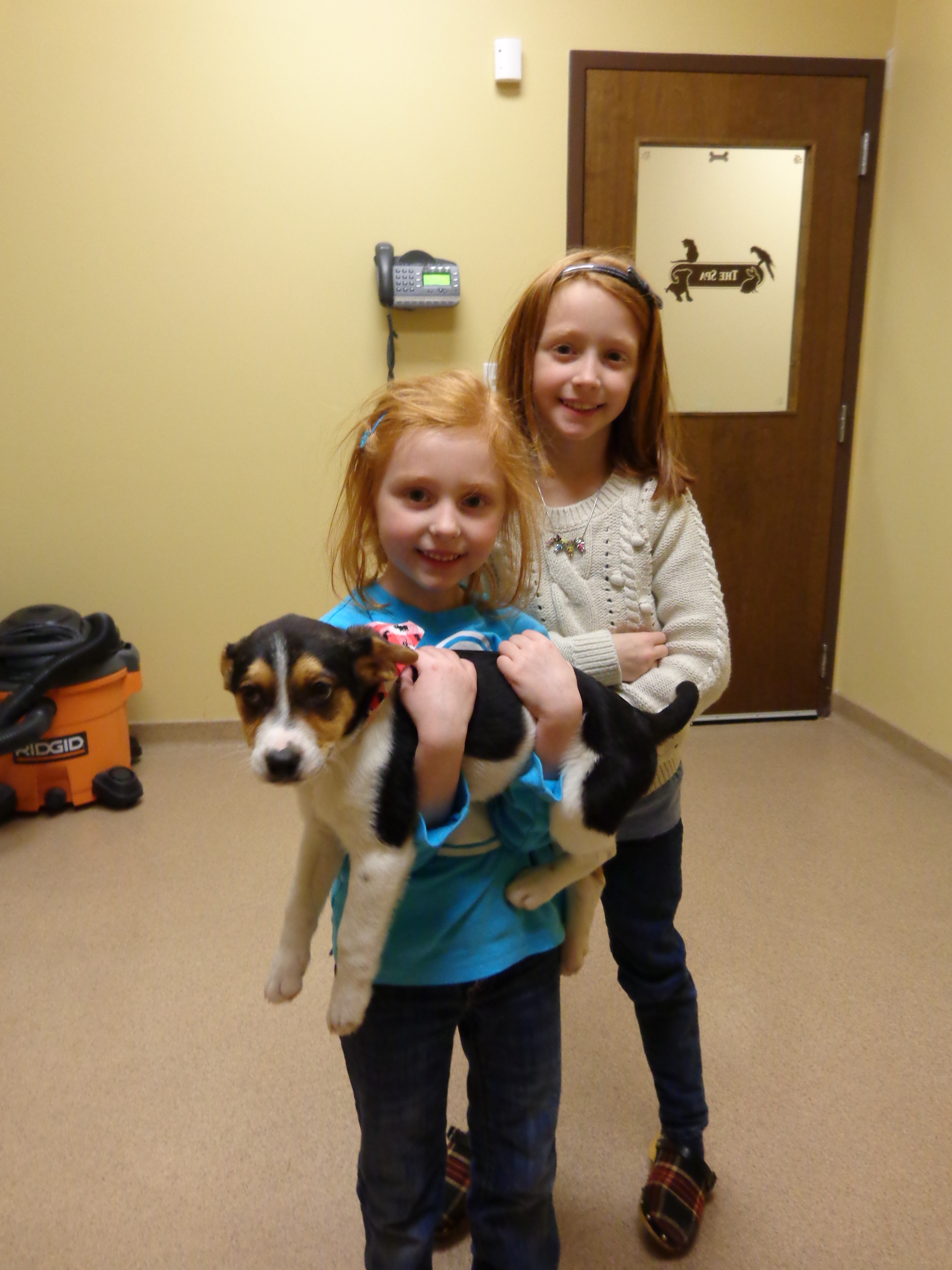 This is my mom. Her name is Leslie. I just call her “mom.” She is also an author. She wrote SPEAKING OF APRAXIA because she wanted to be able to help me and other kids with apraxia. And their families. Before she wrote this book, she was a nurse. She really likes helping people. (CAPTION: Me and my sister with a puppy)